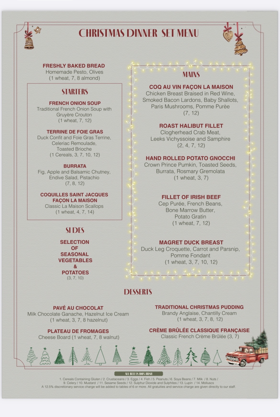 - The Christmas set lunch and set dinner menus are available every day from 24 November until the end of December